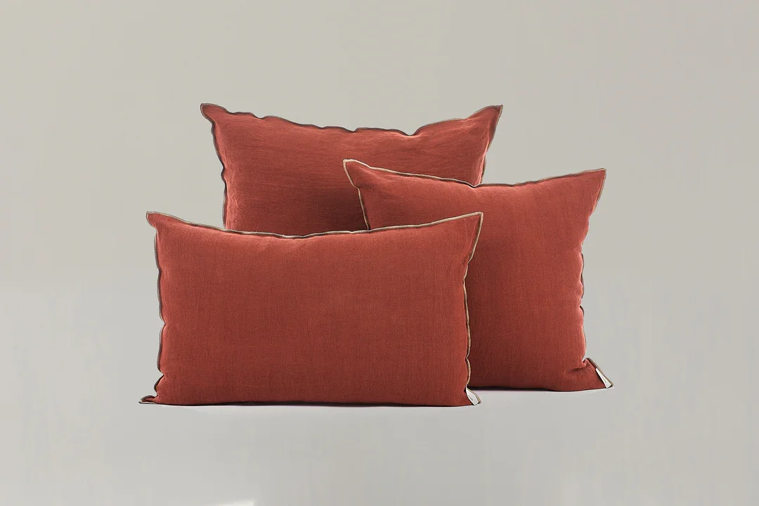 Bonitos cojines en lino lavado con un vivo cosido en otro lino haciendo contraste.