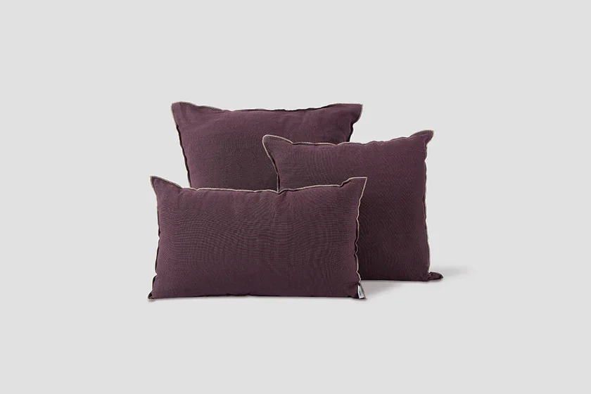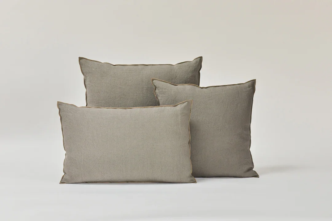 Bonitos cojines en lino lavado con un vivo cosido en otro lino haciendo contraste.