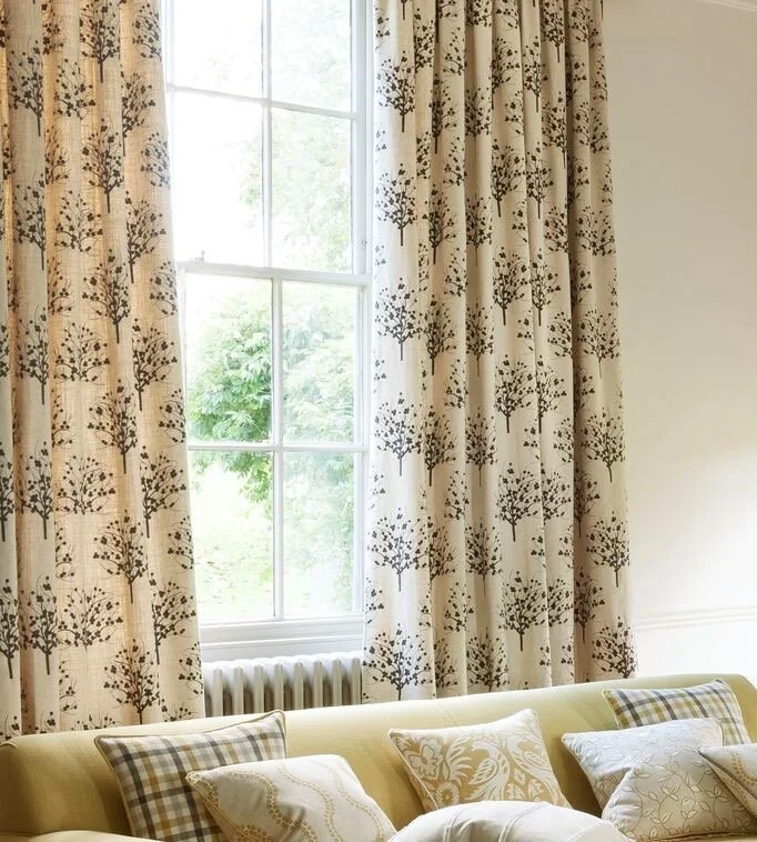 Preciosa tela con árboles bordados. No recomendada para tapizado al ser bordada.
